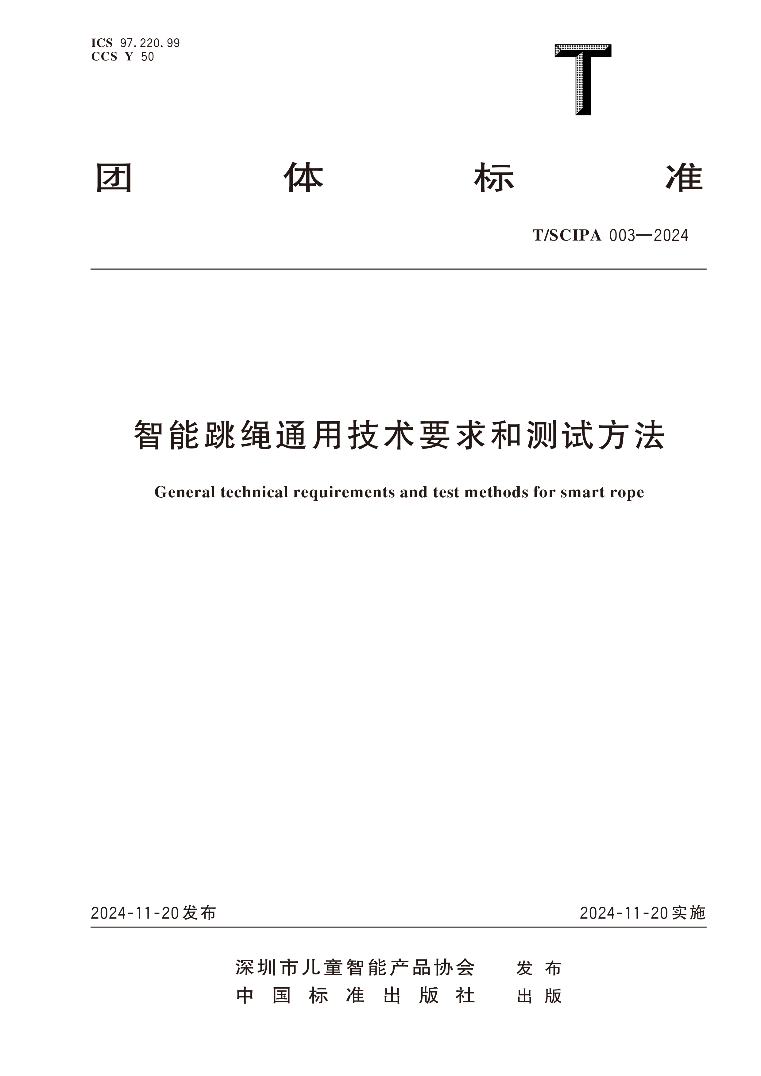 3 | 智能跳绳通用技术要求和测试方法 | T/SCIPA 003-2024 | 31元 |