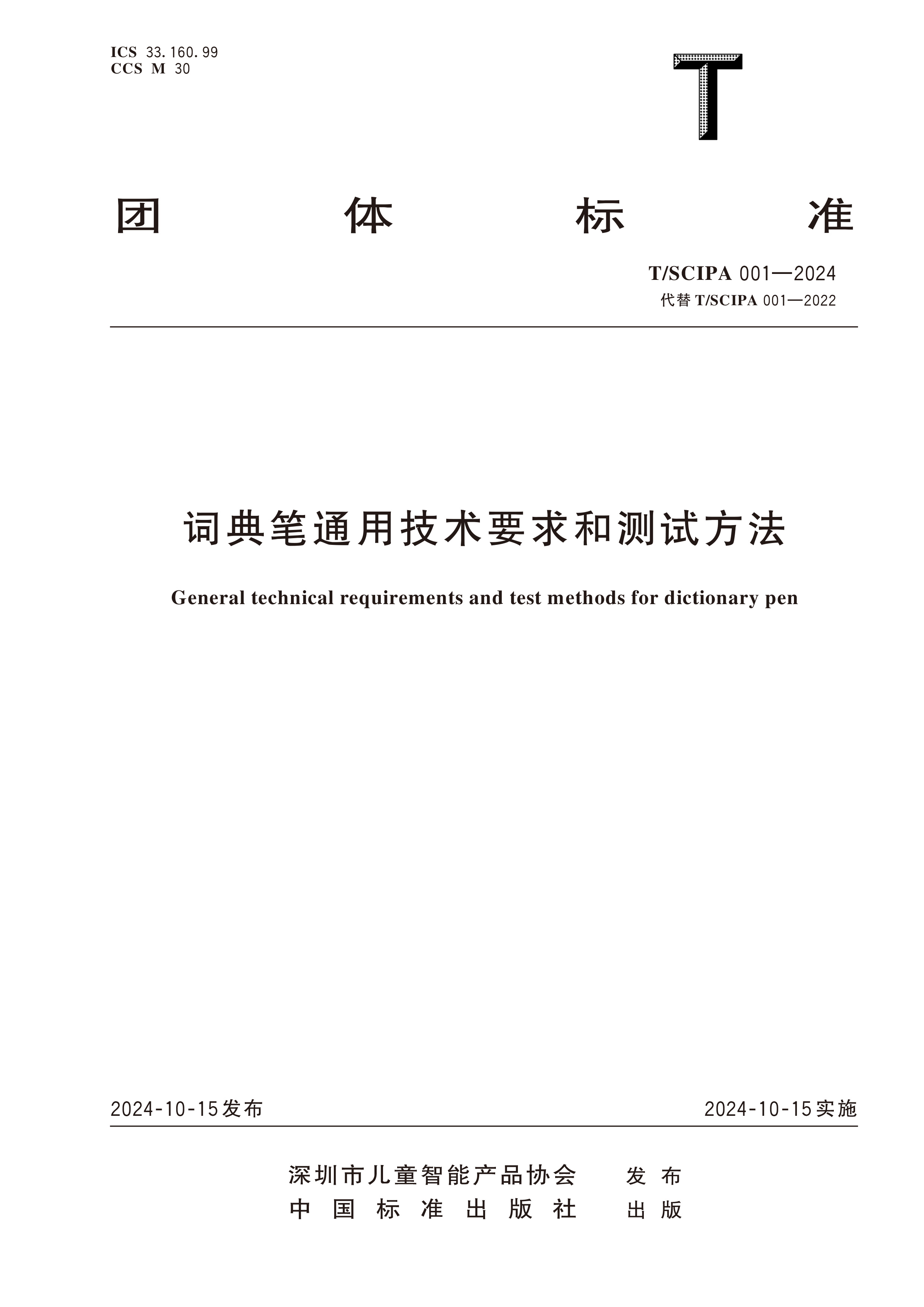 1 | 词典笔通用技术要求和测试方法 | T/SCIPA 001-2024 | 49元 |